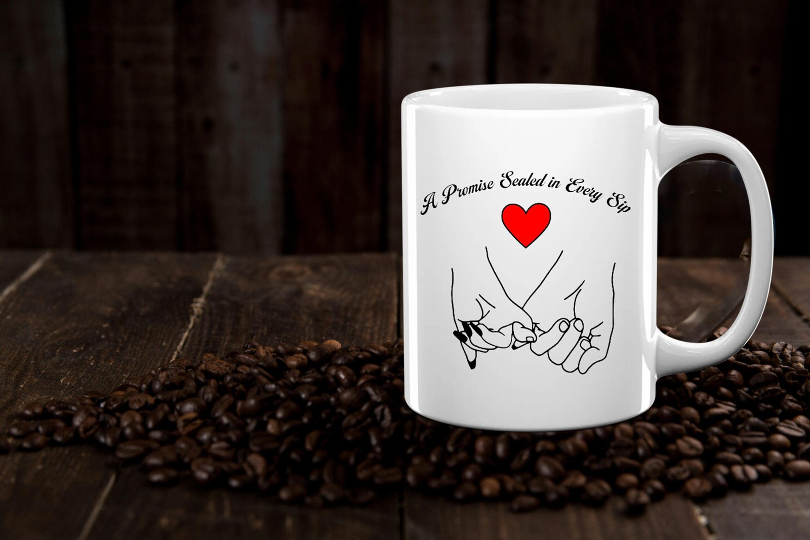 This charming ceramic mug features a pinky promise hand illustration paired with a heart motif to convey unwavering commitment and affection. The design is simple yet impactful, making it ideal for romantic moments. Its neutral tone appeals to a variety of tastes while keeping the focus on the meaningful graphics. Perfect for couples who want a daily reminder of their bond or anyone wishing to show their appreciation through a thoughtful keepsake.